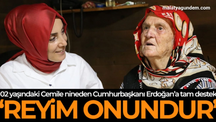 Trabzon'un Dernekpazarı ilçesinde yaşayan 102 yaşındaki Cemile Topaloğlu, kendisini ziyaret eden AK Parti Trabzon Milletvekili Bahar Ayvazoğlu vasıtasıyla Cumhurbaşkanı Recep Tayyip Erdoğan'a seslenerek 'Başkanlığı elinden gelirse kimseye bırakmasın Gözlerim tavanda iken de reyim onundur. 102 yaşındayım kaç defa bu devir geçti, geçti, geçti... Ama henüz yıkamadılar onu, inşallah yıkılmaz' dedi.