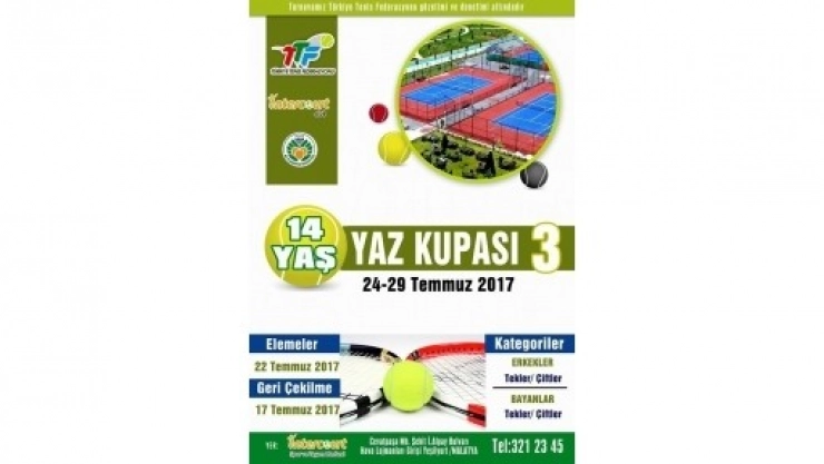 Türkiye Tenis Federasyonu, Malatya Büyükşehir Belediyesi ve Malatya İntercourt Tenis Kulübü tarafından organize edilen “14 Yaş Yaz Kupası Tenis Turnuvası’ 24-29 Temmuz tarihleri arasında Malatya’da düzenlenecek.