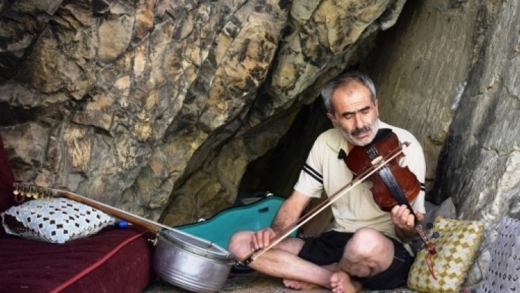 Malatya'nın Arapgir ilçesinde Kemal İnbaşı isimli kişi 40 yıldır tek dostu olarak gördüğü cümbüşü ve kemanıyla mağarada yaşıyor.