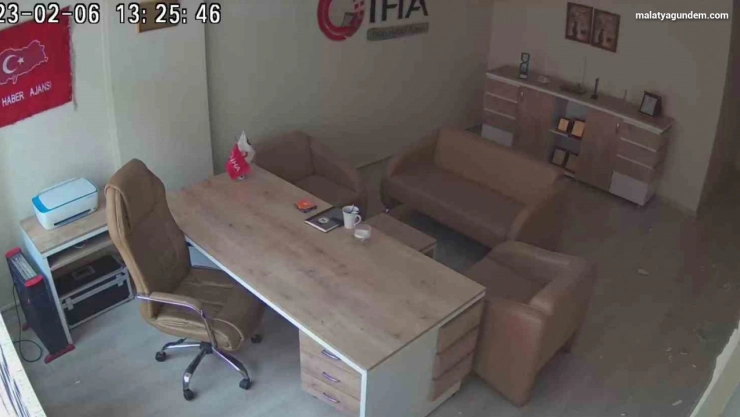 Sabah 04.24’te Pazarcık merkezli 7,7 şiddetindeki depremin ardından bundan bağımsız olarak 7,6 şiddetinde öğle saatlerinde bir deprem daha yaşandı. Deprem anı güvenlik kamerasına yansıdı. İhlas Haber Ajansı Malatya Bürosu’ndaki dolaplar ve malzemeler depremin etkisiyle yerinden fırladı. O anlar an be an kaydedildi. Binada kimsenin olmaması muhtemel bir yaralanmanın da önüne geçti.