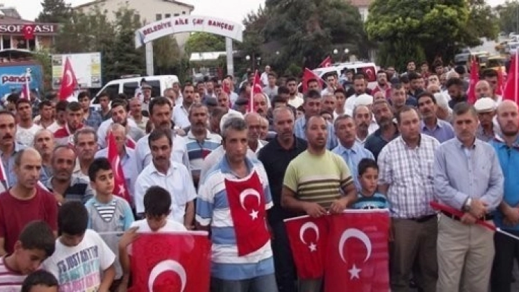İlçe halkı terör saldırılarını protesto etmek için ilçe girişinde başlayarak, merkez Cumhuriyet Meydanı’na kadar yürüdü. Protesto yürüyüşlerinin yol üzerinde olması nedeni ile trafikte uzun kuyruklar oluştu. Yolda bekleyen araçlar korna çalarak protestoya destek olurken vatandaşlar, "Hepimiz askeriz, hepimiz polisiz", "Kahrolsun PKK", "Askere uzanan eller kırılsın", "Şehitler ölmez vatan bölünmez" şeklinde atılan sloganlar attı. Kalabalık, İlçe Jandarma Komutanlığı’nı ve İlçe Emniyet Müdürlüğü’nü ziyaret ederek, şehit olan asker ve polisler için başsağlığı diledi.