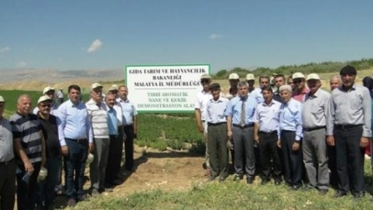 Akçadağ İlçesine bağlı Yağmurlu Mahallesinde demonstrasyon alanında dikili tıbbi nane ve kekik fidelerinin hasadının yaklaşması nedeniyle tarla günü düzenlendi.