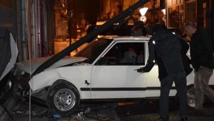 Malatya’da alkollü olduğu ileri sürülen sürücü elektrik direğine çarptıktan sonra işyerine daldı.