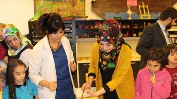Aileler Atölyede etkiliğinin konuğu 3.sınıf öğrencileri ve velileri oldu. Veliler Rengarenk Atölyesinde, Osmanlı ve Selçuklu motifleriyle seramik kazıma tekniğini öğrenerek birbirinden güzel ebrular yaptı. Mutfak Sanatları Atölyesinde lezzetli pideler yapan veliler, Masal Evi Atölyesinde ise kendi masallarını oluşturdular. Düşünme Becerileri ve Lego Atölyesinde eğlenceli oyunlar oynayan veliler etkinliğin tadını doyasıya çıkardı. Küçük çınarlar atölyelerde öğrendiklerini anne-babalarıyla paylaşmanın mutluluğunu yaşarken, aileler de çocukların öğrendikleri karşısında hayranlıklarını gizleyemedi.