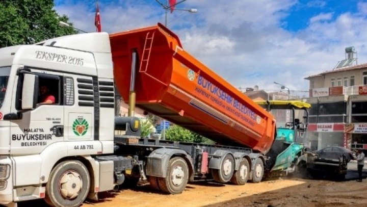 Yaklaşan Ramazan Bayramı öncesi çalışmalarını yoğunlaştıran Malatya Büyükşehir Belediyesi, Akçadağ ilçe merkezinde sıcak asfalt çalışması yaptı.
