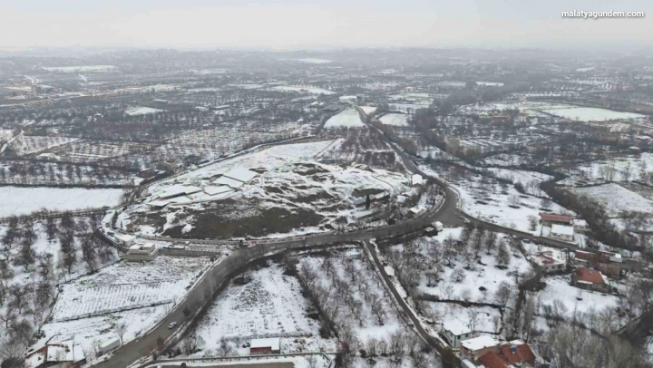 Arslantepe Höyüğü karla kaplı haliyle havadan görüntülendi