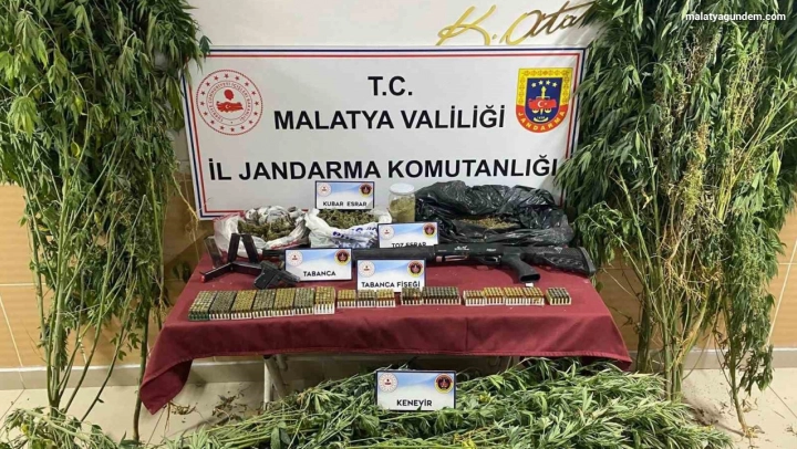 Malatya'da jandarma ekipleri tarafından düzenlenen uyuşturucu operasyonunda 550 gram esrar ve 32 kök kenevir bitkisi ele geçirilirken, operasyonda 1 kişi gözaltına alındı.