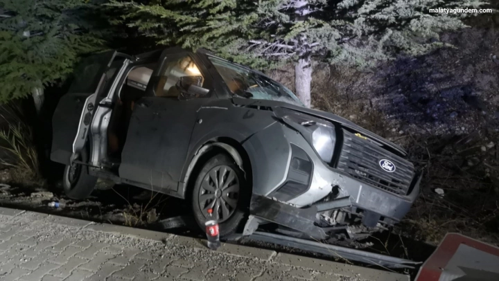 Malatya'da sürücüsünün direksiyon hakimiyetini kaybettiği hafif ticari araç refüje çarparak ağaçlık alana savruldu. Kazada 1 kişi yaralandı.