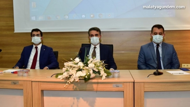 Doğanşehir Turgut Özal Üniversitesi Vahap Küçük Meslek Yüksek Okulu Konferans Salonu'nda düzenlenen toplantıya, Vali Aydın Baruş, İlçe Kaymakamı Halil İbrahim Köroğlu, İlçe Belediye Başkanı Durali Zelyurt ve kurum müdürleri ve muhtarlar katıldı.