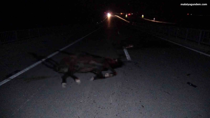 Olay, akşam saatlerinde Malatya-Ankara karayolu Akçadağ ilçesi Sultansuyu Tarım İşletmesi mevkiinde meydana geldi. İddiaya göre, bulundukları tavladan kaçan bir grup yarış atı karayoluna çıktı. Bu sırada yoldan geçen araçlar atlara çarptı. Kazalarda 1 sürücü yaralandı,