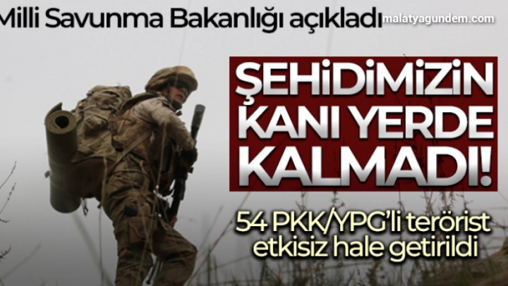 Milli Savunma Bakanlığı tarafından Fırat Kalkanı bölgesinde şehit olan Polis Özel Harekat Aytaç Altunörs'ün kanının yerde kalmadığı, düzenlenen geniş çaplı operasyonlar neticesinde 54 PKK/YPG'li teröristin etkisiz hale getirildiği açıklandı.