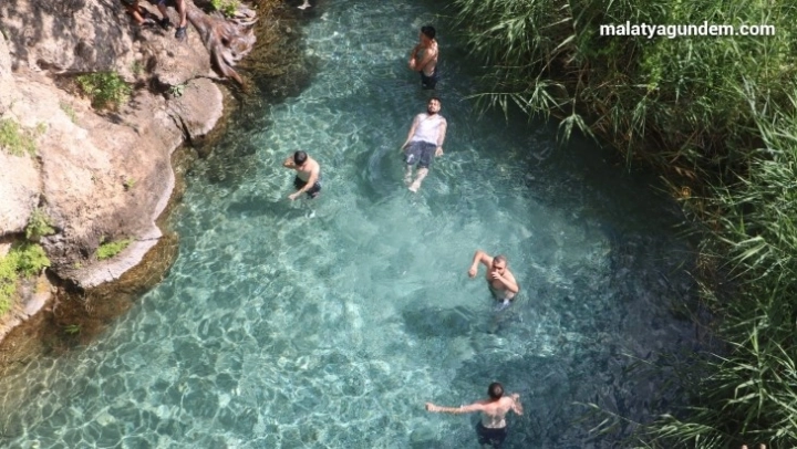 Hava sıcaklığının 35 dereceyi bulduğu Malatya'da serinlemek isteyen vatandaşlar, doğal güzelliğiyle mest eden Yazıhan ilçesinde bulunan Karasu'ya akın ediyor.