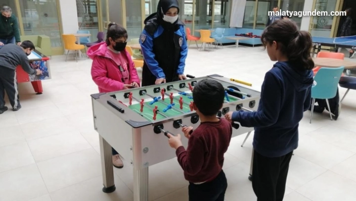 Malatya'da Gençlik Merkezine ziyaret düzenleyen polis ekipleri çocukları hem bilgilendirdi hem de eğlendirdi.