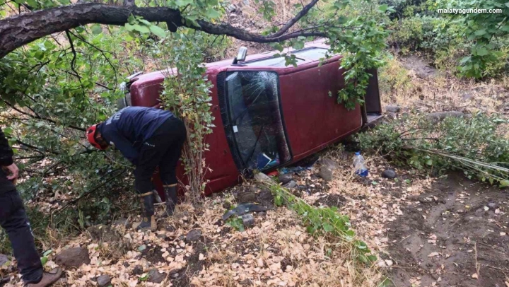 Malatya'nın Hekimhan ilçesinde sürücüsünün direksiyon hakimiyetini kaybettiği pikap şarampole uçtu. Kazada 2 kişi yaralandı.