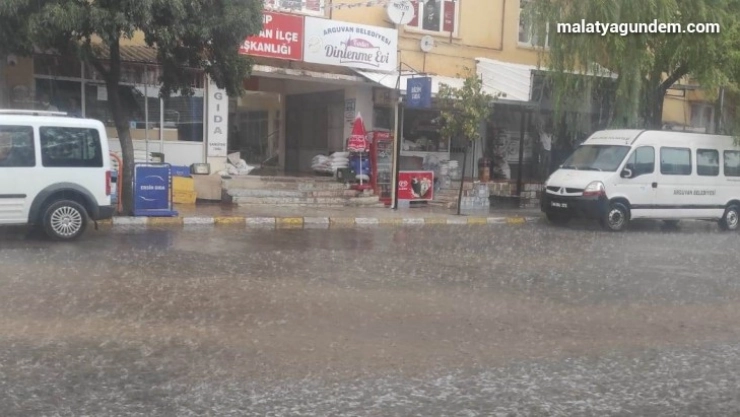 Malatya'nın Arguvan İlçesi'nde aniden bastıran yağmur ve dolu hayatı olumsuz etkiledi.
