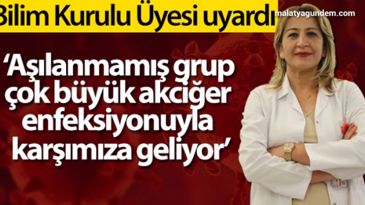 Sağlık Bakanlığı Koronavirüs Bilim Kurulu Üyesi Prof. Dr. Sema Kultufan Turan, 'Son zamanlarda gelen hastaların çoğunlukla aşısız olduğunu görüyoruz. Bu da bizi çok fazla üzüyor. Aslında elimizde aşı gibi ağır hastalıktan koruyacak bir silah varken onu kullanmamış olmanın yoğun bakımda oluşturduğu yansıma gerçekten içler acısı. Aşılanmamış grup çok büyük akciğer enfeksiyonuyla karşımıza geliyor' dedi.
