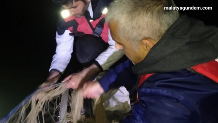 Malatya’daki Karakaya Baraj Gölü çevresinde gece operasyonu yapan ekipler, bin 600 metre balık ağı ele geçirdi.