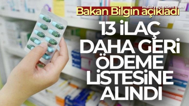 Çalışma ve Sosyal Güvenlik Bakanı Vedat Bilgin, 1'i kanser ilacı olmak üzere 13 ilacı daha geri ödeme listesine aldıklarını duyurdu. Bakan Bilgin, bu ilaçlardan 9'unun yerli üretim olduğunu ifade etti.