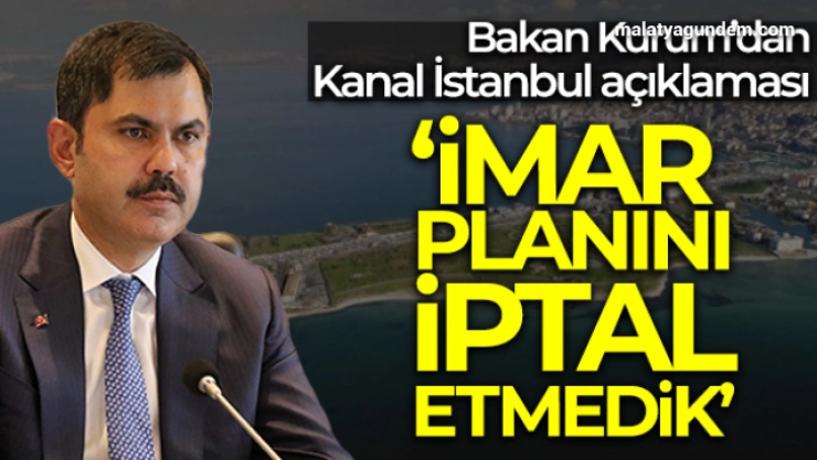 Bakan Kurum, sosyal medya hesabından yaptığı açıklamada Kanal İstanbul Projesi'ni iptal etmediklerinin altını çizerek, “İmar planları yürürlükte. Gurur projemizi adım adım hayata geçiriyoruz. Yapılan, vatandaşlarımızın talep ve ihtiyaçları neticesinde yeni bir imar uygulama değişikliği!” dedi.