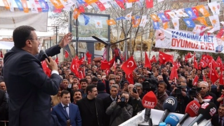 Bakan Tüfenkci, AK Parti hükumetlerinin bütün engellemelere ve terör faaliyetlerine, 15 Temmuz darbe girişimine, sistem arızalarına rağmen Türkiye’yi her alanda üç kat büyüttüğünü kaydetti. Güçlü bir Türkiye için 16 Nisan’da güçlü bir ‘Evet’ diyeceklerini kaydeden Tüfenkci, “15 Temmuz’da Malatya 7 şehit verdi, bunun 4’ü Pütürgeli, biri de 16 yaşındaki Engin Tilbaç kardeşimiz. Hani bugün birileri diyor ya gençler ne yapar, 18 yaşında milletvekili olur mu, 16 yaşındaki biz gençlerimizi şehit verdik şehit” diye konuştu.