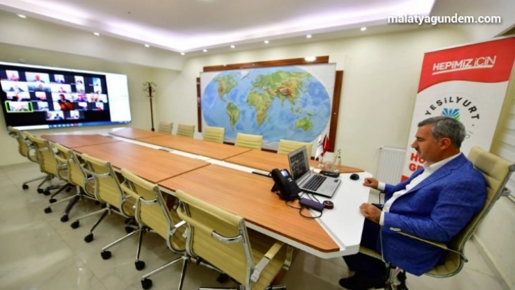 Malatya'nın Yeşilyurt ilçesi Belediye Başkanı Mehmet Çınar, küresel bir tehdit haline dönüşen yeni tip korona virüs (Covid-19) salgını nedeniyle, başkan yardımcıları ve birim müdürleriyle yaptığı koordinasyon toplantılarını telekonferans yöntemi üzerinden yürütüyor.