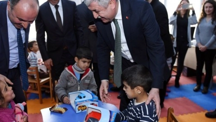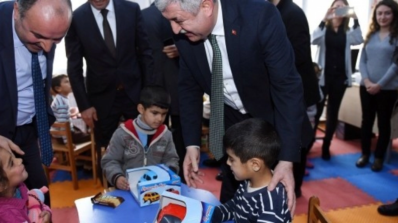 Küçük yaşlarda aileleriyle birlikte savaştan kaçarak Malatya’ya yerleşen küçük muhacirlerin eğitim hayatlarında aksama olmaması için konteyner kent içerisinde hizmet veren 19 Mayıs Fatih İlkokulu anasınıfını ziyaret eden Belediye Başkanı Polat, verilen eğitimler hakkında öğretmenlerden bilgiler aldıktan sonra çocuklarla yakından ilgilendi. Sadrettin Konevi İmam Hatip Lisesi Öğrencilerinin yaptığı bez bebekleri kız öğrencilere, Yeşilyurt Kent Konseyi tarafından temin edilen çeşitli hediyeleri de erkek öğrencilere dağıtan Yeşilyurt Belediye Başkanı Hacı Uğur Polat, duyarlı yaklaşımlarından dolayı Kent Konseyi ile öğrencilere teşekkür ederek, tebrik etti. Çocuklara ayrıca oyuncak araba ve özel hazırlanan hediyeler dağıtan Polat, savaştan kaçarak Malatya’ya yerleşen Suriyeli ve Türkmen ailelerin rahat bir hayat sürmeleri için Beydağı Konaklama Tesislerindeki imkanların yeterli olduğunu söyledi. Türkiye’nin mazlum insanlara kucak açan çok büyük bir devlet olduğunu dile getiren Başkan Polat, “Bugün bir yandan hüzün bir yandan sevinç duygularını bir arada yaşamaktayız. Dünya tatlısı Suriyeli çocuklarımızla bir araya geldik, heyecanlarına ve sevinçlerine ortak olduk. Zalim ve azgın bir diktatörün zulmünden dolayı vatanlarından kaçarak ülkemize sığınan bu yavrularımızı en güzel şekilde kentimizde ağırlıyoruz. Bizlerde bu muhacir çocuklarımızın ve kardeşlerimizin Ensarlarıyız. Bugün ülkemizde üç milyonun üzerinde Suriyeli muhacir kardeşimize Türkiye olarak kucağımızı açtık, onları misafir ediyoruz. Tek temennimiz Suriye’deki savaşın bir an önce sona ermesi ve bu muhacir kardeşlerimizin yeniden vatanlarına dönemleridir. Malatya’da gerek kampımızda gerekse de kent merkezindeki mahallelerimizde Suriyeli kardeşlerimiz hayatlarını idame etmektedirler. Bizler de Yeşilyurt Belediyesi olarak her zaman onların yanındayız. Bugünde Sadrettin Konevi İmam Hatip Lisesi öğrencilerimizin yapmış olduğu bez bebekleri ve çeşitli oyuncakları çocuklarımıza hediye ettik, onların yüzlerindeki tebessüm bizleri çok fazla mutlu etti” şeklinde konuştu.