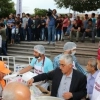 Battalgazi Belediyesi İftar Çadırı’nda Ramazan ayının ilk iftarında yaklaşık 2 bin kişiye iftar yemeği verildi. İftar öncesi, iftar çadırı yanına kurulan sahnede “Battalgazi’de İftar” adlı programa Battalgazi Belediye Başkanı Selahattin Gürkan ve İl Müftüsü Ümit Çimen konuk oldu. Kur’an-ı Kerim tilaveti ile başlayan programda Battalgazi Belediye Başkanı Selahattin Gürkan, Battalgazi Belediyesi tarafından Ramazan ayında yapılacak olan etkinliklerle ilgili değerlendirmelerde bulundu. İl Müftüsü Ümit Çimen ise Ramazan ayının önemi hakkında bilgiler sundu. Program sonrası habercilere değerlendirmede bulunan Battalgazi Belediye Başkanı Selahattin Gürkan, “Bu iftar çadırımız Malatya’nın merkezinde Yeni Caminin yanında olan bir iftar çadırı. Ben esasında ifrat ve tefrit boyutuna kaçan iftar yemeklerini pek tasvip eden biri değilim. Ancak burada geçtiğimiz yıl ilk uygulamasını yaptığımız iftar çadırında yemek programında şunu gördük. Özellikle Malatya’ya gelen garip gureba, gurbetçi insanlarımızın özellikle Suriyeli mülteci kardeşlerimizin Irak’tan, Afganistan’dan gelen Malatya’nın fakir fukarasının merkezi bir yerde iftar çadırının kurulmasının elzem ve gerekli olduğunu geçtiğimiz yıl tecrübelerimiz ışığında gördük. Bu yılda iftar çadırının aynı şekilde devam ettiriyoruz. İftar çadırlarında bin 500-2 bin kişiye iftar yemeği veriliyor. Bu verilen iftar yemeğini hayırsever vatandaşlarımız karşılıyor. Belediyemizin bu anlamda herhangi bir gideri söz konusu değil. İftar çadırında iftar yemeğinin yanında, 18.30’dan 22.30’a kadar Ramazan ayına özel etkinliklerimiz bulunmaktadır. Programın içerisinde çocuklarımıza yönelik iftar ve Ramazan eğlencelerini, onlara ikramlar noktasında Osmanlı macunundan tutun, kağıt helvasına, Osmanlı şerbetinden, diğer ikramlara varana kadar, tasavvuf ve ilahi müziklerinin sunulması, kısa skeçler, yani iftar çadırında iftar ve Ramazan ayını Malatya insanımız dolu dolu yaşamaya başladı. İftar ve Ramazan’ın ruhuna uygun bir şekilde idrak etmenin huzurunu ve ahengini yaşıyoruz” diye konuştu.