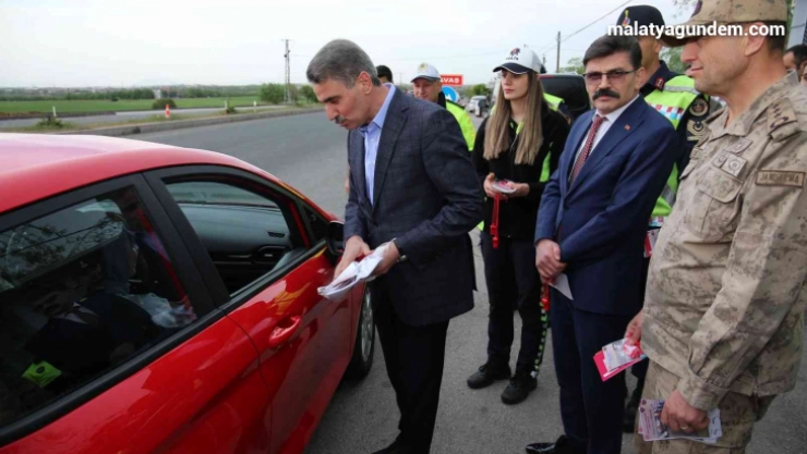 Malatya Valisi Aydın Baruş, bayram öncesi sürücüleri dikkatli olmaları ve kurallara uymaları konusunda uyararak, emniyet kemeri denetimine katıldı.