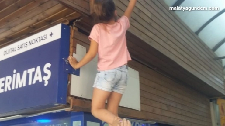 Kent merkezindeki bir pasajın çatı kısmında kabloya dolanan yavru kediyi gören vatandaşlar, kediyi kurtarmak için uğraştı. Kedinin düşmemesi için de uğraşan vatandaşlar, gittikçe kabloya dolanan kedinin boğulmaması için yoldan geçen 9 yaşındaki Yağmur’dan yardım istediler. Çevredekilerin sırtına çıkan Yağmur, ipe dolanan yavru kediyi kurtararak aşağı indirdi.