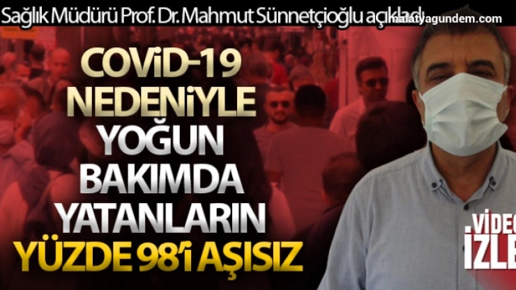 Van İl Sağlık Müdürü Prof. Dr. Mahmut Sünnetçioğlu, yoğun bakım ve hastane servislerinde Covid-19 tanısıyla yatan hastaların yüzde 98'inin aşısız, yaklaşık yüzde 1'inin ise üçüncü doz zamanı geldiği halde yaptırmayanlar olduğunu söyledi.