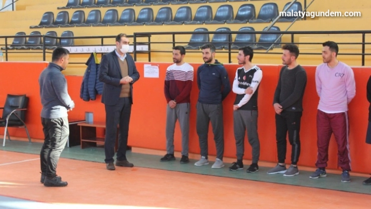 Darende Kaymakamı Ökkeş Safa Türkoğlu, ilçe spor salonunda düzenlenen POMEM adayları için fiziki yeterlilik kursunu ziyaret ederek, kurs hakkında bilgi aldı.