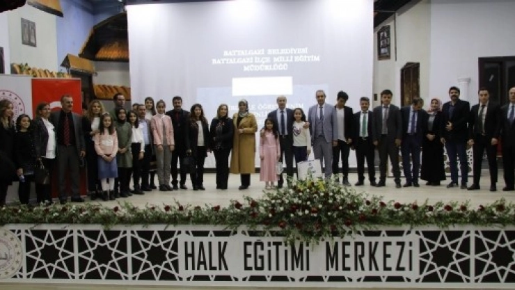 Ödül töreninin ardından toplu fotoğraf çektirilirken, öğrencilere Battalgazi Belediyesi tarafından çeşitli hediyeler verildi.
