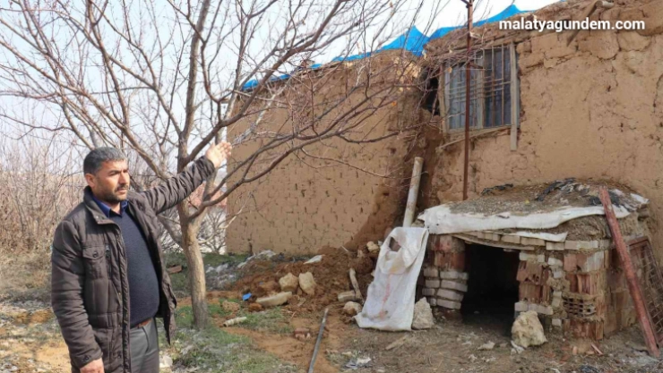 Malatya'da tek katlı kerpiç bir evin duvarı eriyen kar suyu nedeniyle çöktü.
