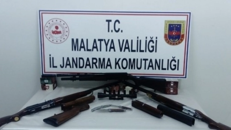 Jandarma ekipleri tarafından Malatya’nın Hekimhan ve Kuluncak ilçelerinde bulunan 2 adrese eş zamanlı operasyon düzenlendi. Operasyonda 3 adet ruhsatsız av tüfeği, 150 av tüfeği fişeği, 1 adet tüfek dürbünü, 4 adet kabza, 1 adet dipçik ve 2 bıçak ele geçiren jandarma, 2 kişiyi gözaltına aldı.