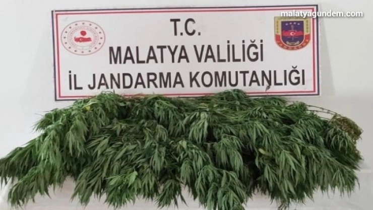 Malatya'nın Arguvan ilçesinde bir tarlada ekili vaziyette 38 kök Hint keneviri 2 gram kubar esrar ele geçirildi.