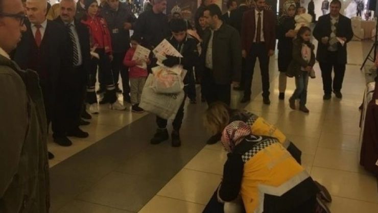 Alış veriş ve yaşam merkezinde görev yapanlara, maket üzerinde ilk yardım uygulaması yapıldı. Sağlık Görevlileri maket üzerinde uygulama yapıp, rahatsızlık geçiren vatandaşa ilk etapta nasıl müdahale edilmesi gerektiğini anlattılar. Rahatsızlık geçiren vatandaşa bir yandan müdahale ederken, diğer yandan 112’nin aranmasını isteyen eğitim veren sağlık görevlileri, alış veriş merkezinde görev yapanların nasıl davranmaları gerektiğini dile getirdiler.