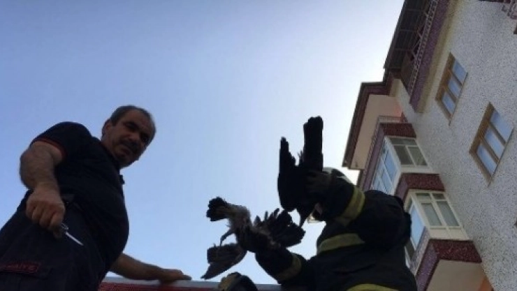 Malatya’nın Battalgazi ilçesinde ağaçta mahsur kalan iki kuş için kurtarma operasyonu düzenlendi.