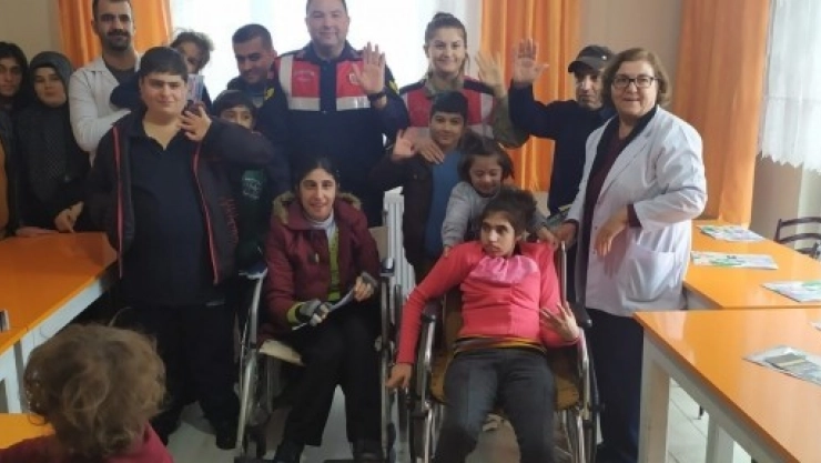 Malatya’nın Yeşilyurt İlçe Jandarma Komutanlığına bağlı jandarma trafik timi Engelliler Haftası nedeniyle El ele Özel Eğitim ve Rehabilatasyon Merkezi öğrencilerine trafik eğitimi verdi.