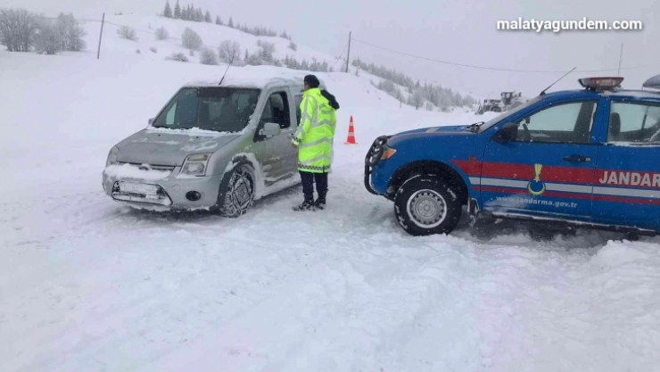 Malatya’da yoğun kar yağışı ve buzlanma nedeniyle Jandarma tarafından araçlarda kış lastiği denetimine ağırlık verildi.