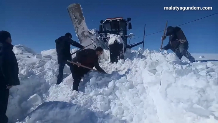 Malatya'nın Darende ilçesinde kar yağışı nedeniyle kapanan mahalle yollarını açmaya giden kar küreme aracı kara saplandı. Kara saplanan aracı bulunduğu yerden çıkarmak için ise vatandaşlar seferber oldu.