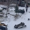 Malatya'da kar yağışı ve buzlanma nedeniyle kayan aracın park halindeki aracı devirdiği kaza cep telefonu kameralarına yansıdı.