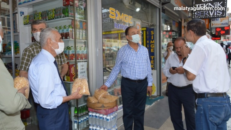 Malatya Esnaf ve Sanatkarlar Odaları Birliği (MESOB) Başkanı Şevket Keskin, Malatya Esnaf ve Sanatkarlar Kredi kefalet Kooperatifi Başkanı Ali Evren ile esnaf odası başkanları birlikte Turgut Temelli Caddesi, Bakırcılar Çarşısı ve Niyazi Mısri Caddesinin girişindeki esnafları ziyaret ettiler.