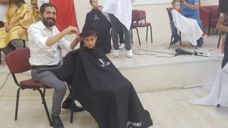 Malatya Şener Eroğlu Kuaför Academy Meslek Eğitim Kursunda eğitim alan kursiyerler, MİAD Sevgi Evlerinde kalan çocukları tıraş etti.