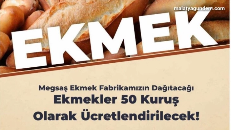 Malatya Büyükşehir Belediye Başkanı Selahattin Gürkan imzasıyla yayınlanan bildiride, Malatya Büyükşehir Belediyesi iştiraklerinden Malatya Ekmek Gıda Sanayi A.Ş (MEGSAŞ) tarafından halka verilen ekmekte 60 kuruşluk indirim yapılıp, 50 kuruş alınıyor.