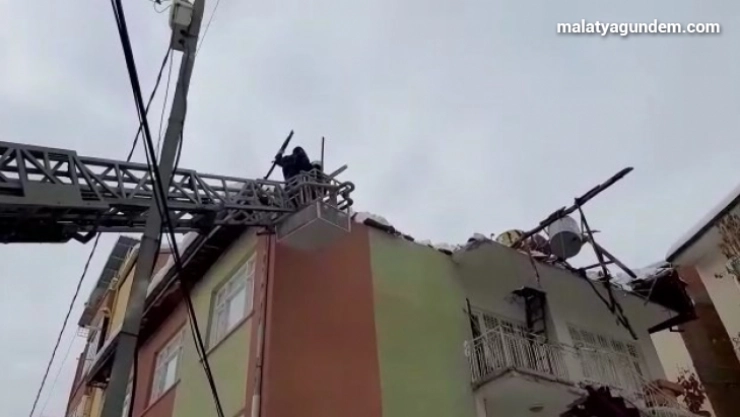 Malatya'da kar kütlesini taşıyamayan iki evin çatısında çökme meydana geldi