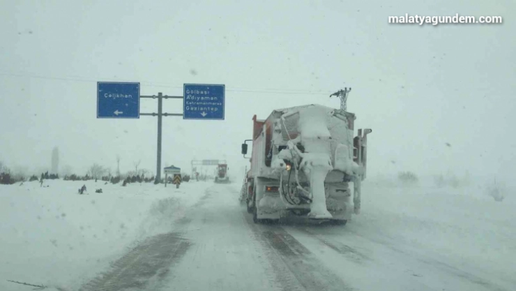 İlimiz genelinde yoğun kar yağışı, rüzgâr ve buna bağlı olarak tipi ve yollardaki buzlanma sebebiyle İlimizi diğer illere ve ilçelere bağlayan karayolları ile mahalle yollarında ulaşımda meydana gelen aksaklıkların giderilmesi için Karayolları 8. Bölge Müdürlüğü, Malatya Büyükşehir Belediyesi ve İlçe Belediyeleri ekipleri tarafından yol açma çalışmaları 24 saat çalışma esasına göre devam ettirilmektedir” ifadelerine yer verildi.