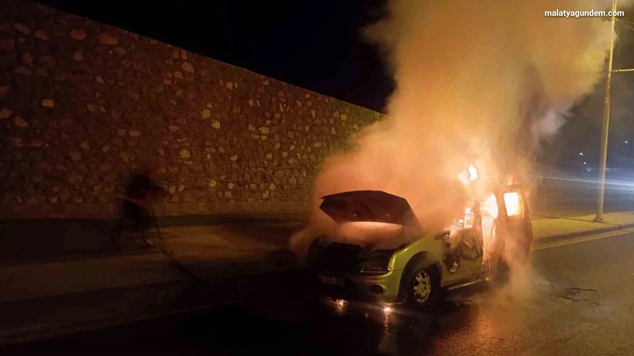 Edinilen bilgilere göre, bölgede seyir halinde olan Ü.S. idaresindeki 44 LT 627 plakalı hafif ticari araç seyir halindeyken henüz belirlenemeyen bir nedenle alev aldı. İhbar üzerine olay yerine itfaiye ekipleri sevk edilirken söndürülen yangında araç kullanılmaz hale geldi.