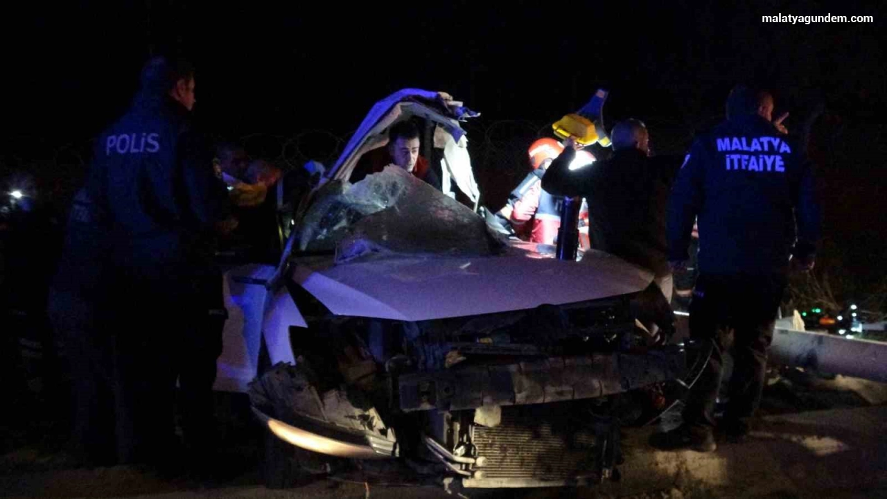 Malatya'da trambüs direğine çarpan araç kağıt gibi dağıldı: 1'i ağır 2 yaralı