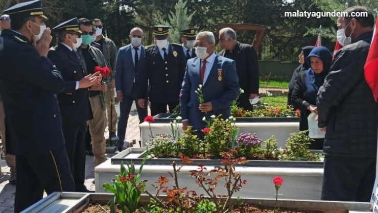 Coronavirüs önlemleri çerçevesinde Malatya’da Şehitliğinde düzenlenen programda sadece İl Emniyet Müdürü Ercan Dağdeviren, Malatya Polis Meslek Eğitim Merkezi Müdürü Faruk Nalçacı, Emniyet Teşkilatı Vazife Malulleri ve Şehit Aileleri Yardımlaşma Vakfı Başkan yardımcısı Gazi Ramazan Karaca, anıta çelenk bıraktı