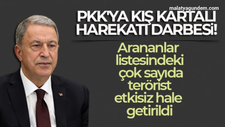 Terörle mücadelenin kararlılıkla devam edeceğini vurgulayan Bakan Akar, “Kış Kartalı Harekatı'nda çok sayıda terörist etkisiz hale getirildi. Sonuçları yakından takip ediyoruz, önümüzdeki saatlerde, günlerde harekata ilişkin kesin sonuçları istihbarat kanallarından ve diğer kanallardan alacağız” diye konuştu.